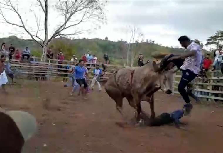 Varios videos grabados por testigos en el sitio muestran cuando el toro primero embiste a un hombre que por fortuna no resultó herido y luego cornea a López dejándolo mal herido.