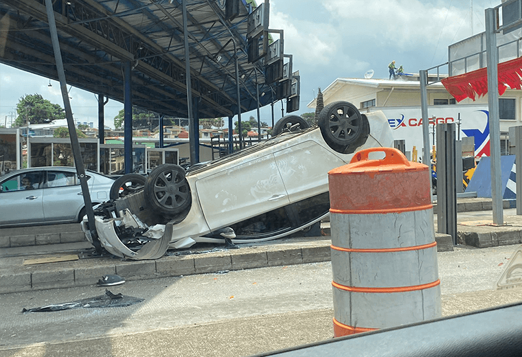 Tal y como se aprecia en las fotografías, un carro volcó producto del impacto. Además, otro de los involucrados impactó uno de los muros.