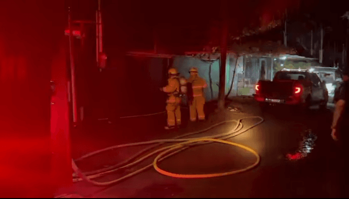 El Cuerpo de Bomberos de Costa Rica atendió la emergencia a las 10:36 p. m., cuando se reportó el incendio de una casa de 100 metros cuadrados, ubicada frente a la plaza del lugar. La estructura estaba envuelta en llamas con riesgo de propagarse a viviendas cercanas.