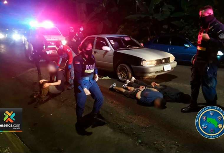 “Tenemos detenidas a cuatro personas, quienes iban dentro de un carro, el cual quedó bajo custodia, uno de los detenidos tiene una herida por arma de fuego y está siendo atendido por paramédicos”, explicó Daniel Calderón, director de Fuerza Pública.