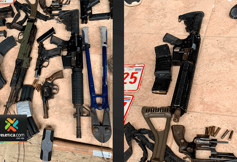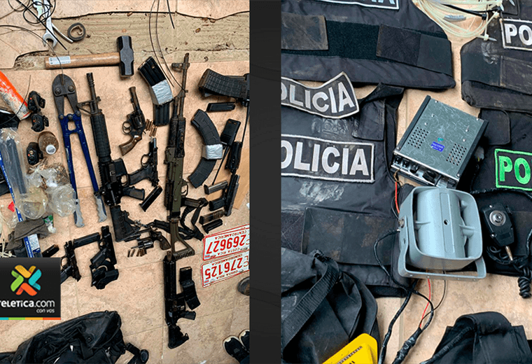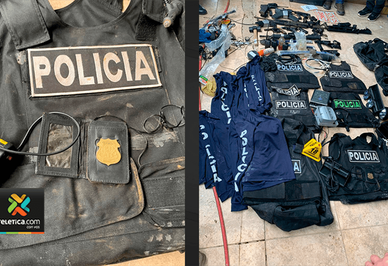 Entre los artículos decomisados hay chalecos antibalas y uniformes similares a los de la Fuerza pública, placas de agentes de OIJ, armas de grueso calibre, herramientas, placas de carro, cortadora de cadenas y candados, radios de comunicación y municiones.