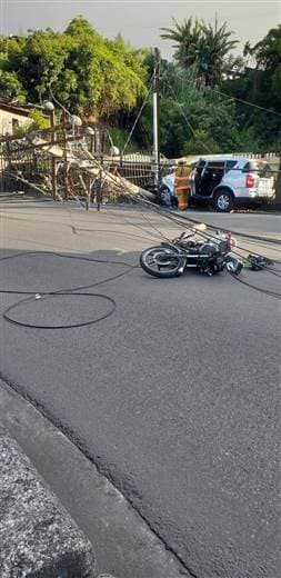 “Ella venía subiendo la cuesta y cuando tomó la curva se salió de la vía e impactó el poste y el portón de una casa, yo venía detrás de un bus y cuando se rompió el poste todo el cableado eléctrico me cayó encima, estoy vivo de milagro”, expresó el motociclista.