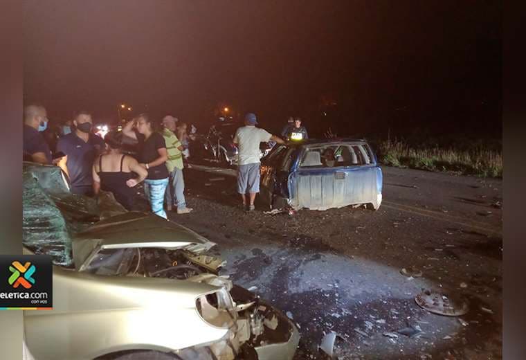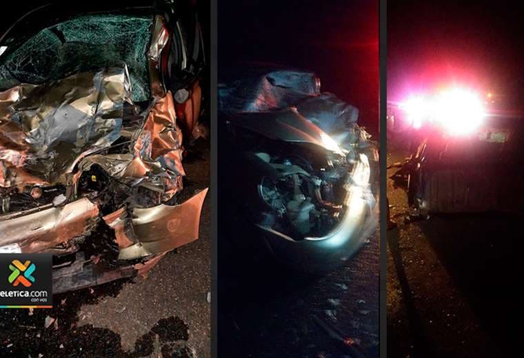 Al menos dos vehículos quedaron partidos en dos tras un violento choque múltiple que se presentó en Savegre de Quepos.