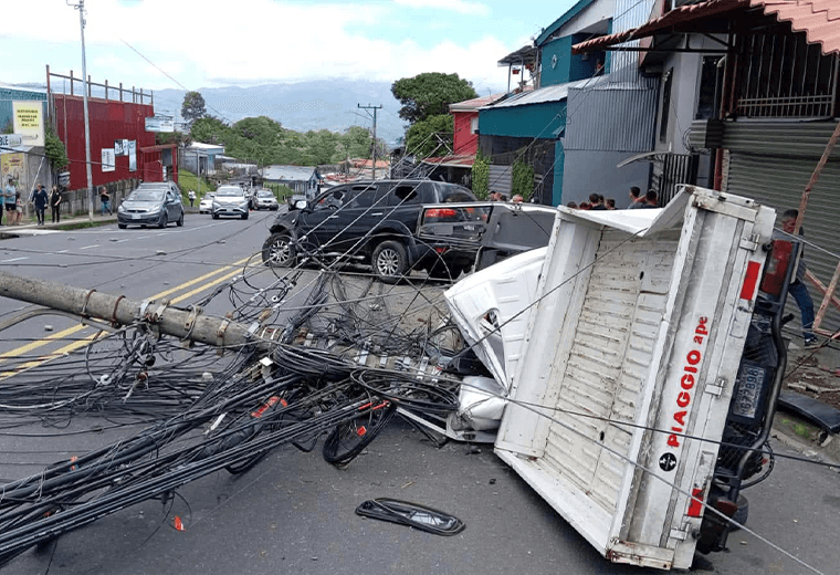 Un accidente dejó tres heridos y a todo un barrio sin electricidad la mañana de este domingo en Mata de Plátano, Goicoechea.