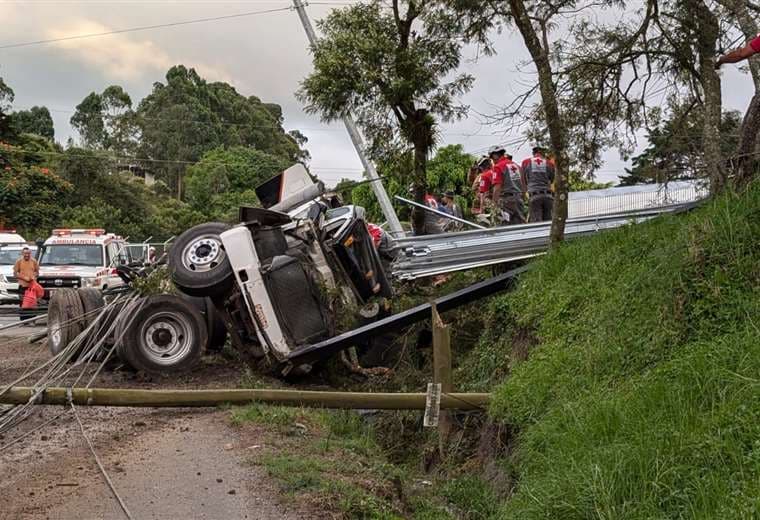 Un aparatoso accidente de un vehículo pesado dejó a dos personas en condición grave en Llano Grande de Cartago.