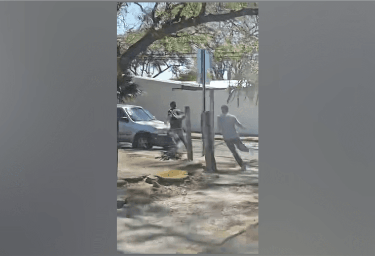 “Son dos hombres que van corriendo, uno con camisa gris y otro va de negro; ambos con anteojos oscuros”, describe la mujer que grabó a los delincuentes.