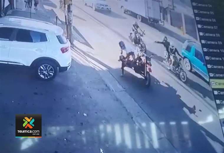 Varios videos muestran el instante cuando dos sujetos en motocicleta atacan a otros dos hombres frente a un supermercado en San Rafael de Alajuela. El ataque se presentó a las 4 p. m. del miércoles.