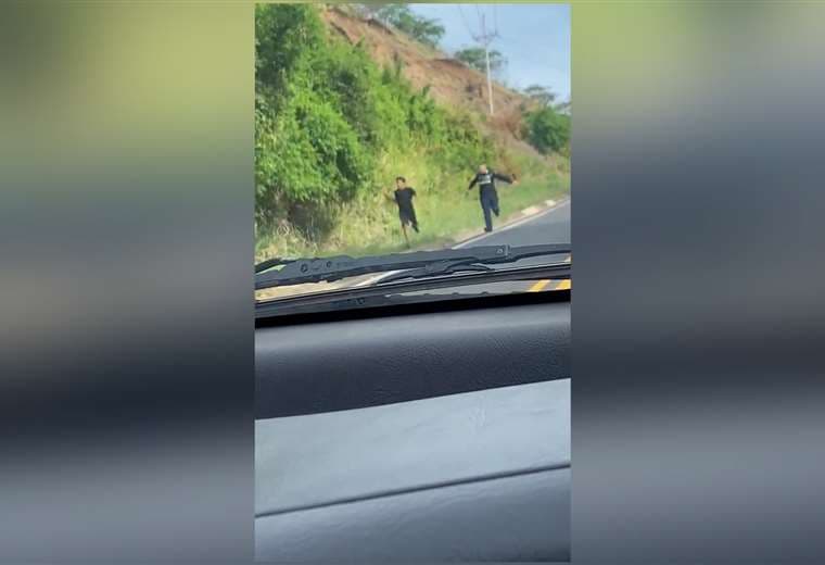 En varios videos que circulan en redes sociales se observa cómo los policías corren tras el hombre por la Radial, hacia Río Grande, hasta que logran detenerlo.