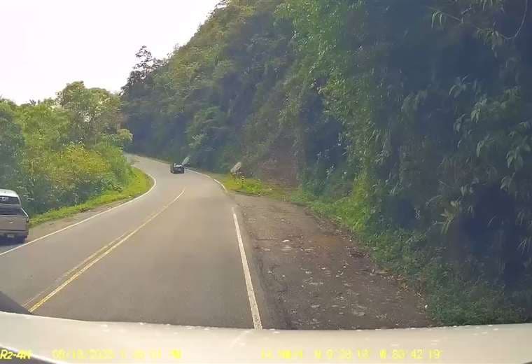 En el video se aprecia cuando varios vehículos rebasan al tráiler antes de llegar a la curva, pero el pick-up no lo logra y se va directo al precipicio.