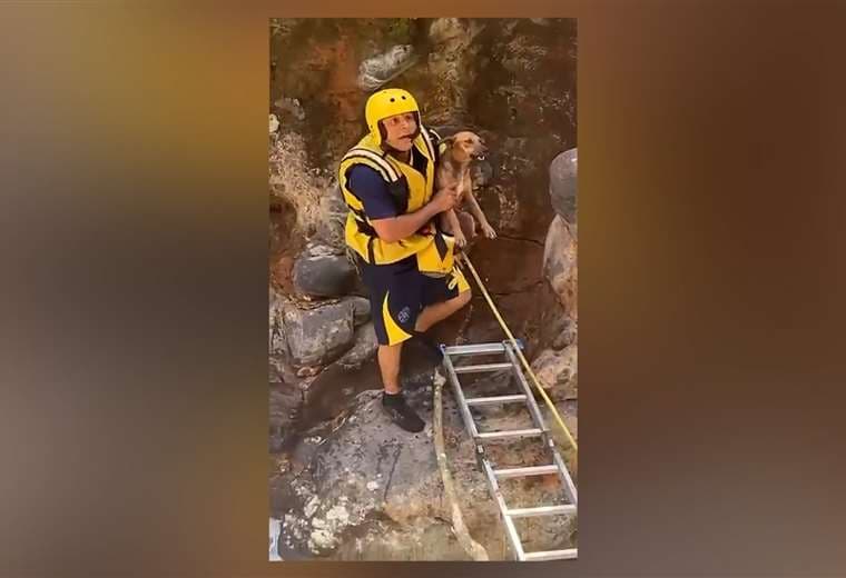 "Recibimos una llamada que indicaba que algunos turistas que estaban en la poza Los Coyotes, habían visto un perrito metido en el cañón del río y que este no podía salir por la corriente y la turbulencia del río, la cual estaba bastante fuerte. Cuando los compañeros llegaron, se verificó que el perrito no podía salir", indicó Castillo.