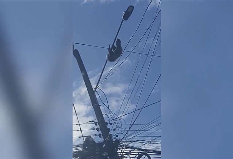 Video: Bomberos auxilian a perezoso que colgaba del alumbrado público en Guápiles