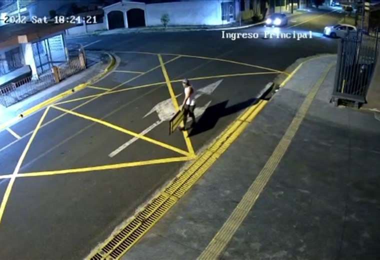 Un video captado por la cámara del sistema de monitoreo de la estación de Bomberos de Desamparados, permitió ver a un delincuente apropiándose de una parrilla metálica que permite el acceso y salida de las unidades de emergencia.