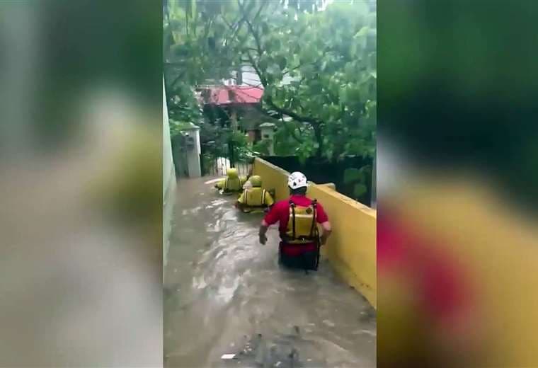 El Cuerpo de Bomberos rescató a cuatro personas que estaban atrapadas en una casa inundada en Santa Ana.