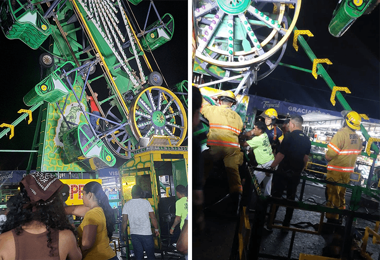 Video: Bomberos rescatan personas atrapadas en juego mecánico en Limón