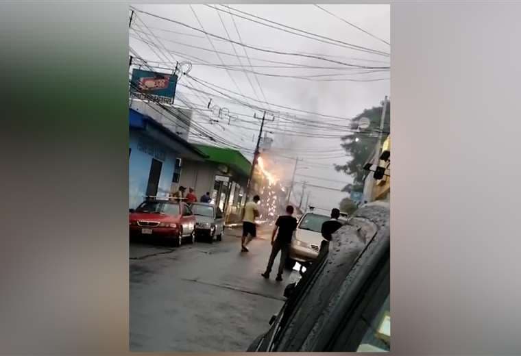 Un video muestra el momento en el que los cables del alumbrado público prenden en llamas. Esto sucedió este sábado, a las 5.30 de la tarde, en un local comercial ubicado en el centro de Esparza.