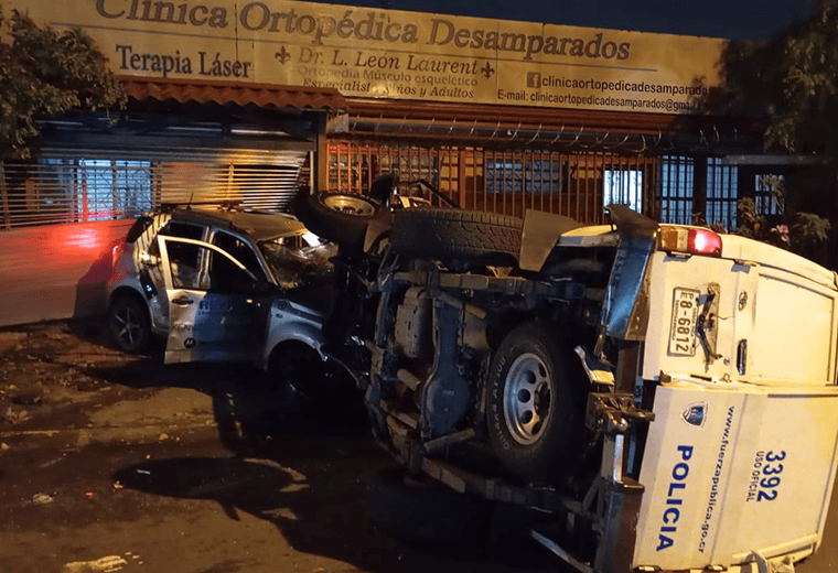 Una patrulla y un carro particular protagonizaron un violento choque la madrugada de este domingo en Desamparados, muy cerca de la plaza de deportes, en el centro del cantón josefino.
