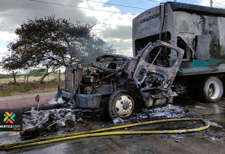 Un carro recolector de basura fue devorado por las llamas la tarde de este viernes en Bagaces, Guanacaste.