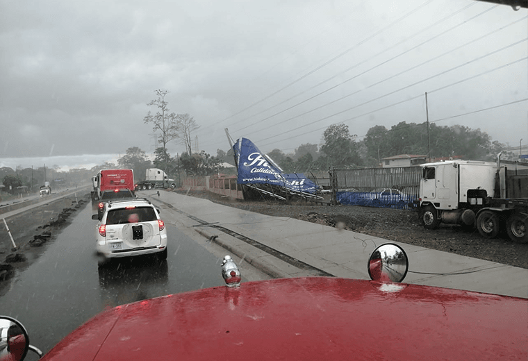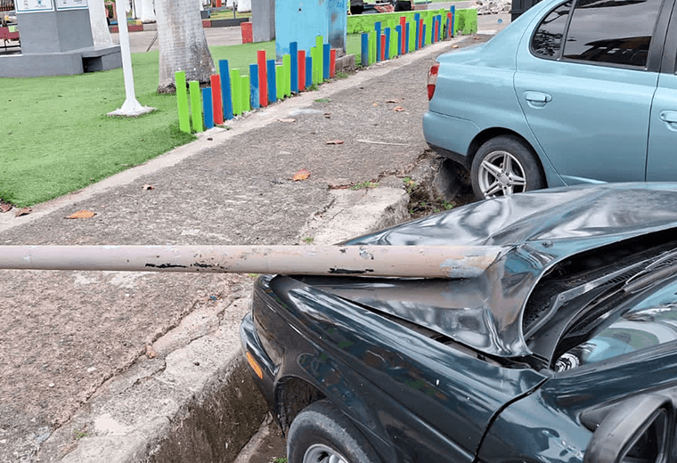 En el centro de Limón, varios rótulos quedaron en el suelo, mientras que en el parque un poste fue derribado y cayó sobre un vehículo.