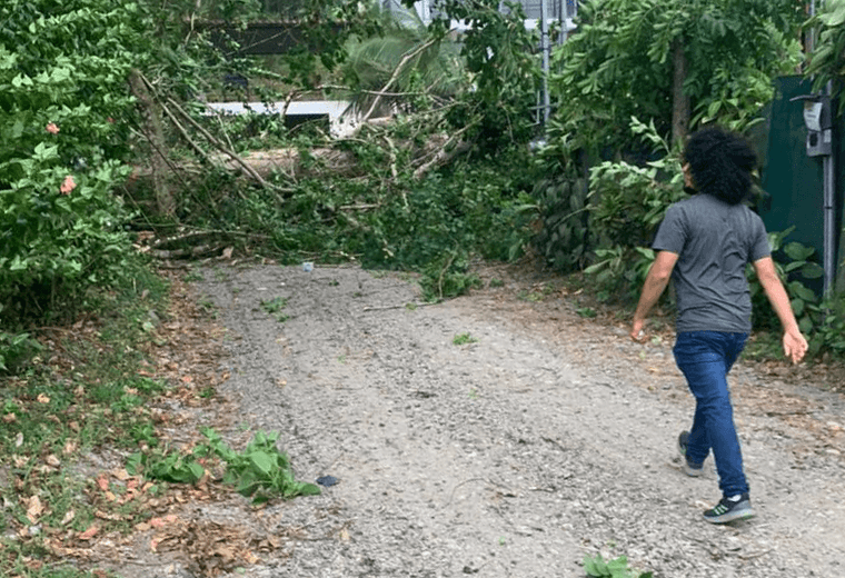 Una situación parecida se dio en Puerto Viejo y Manzanillo de Cahuita, donde varios árboles cayeron al suelo, dañaron algunos carros y bloquearon la vía. Incluso, como se aprecia en las imágenes adjuntas, una rama atravesó el parabrisas de un vehículo y por poco lastima al conductor.