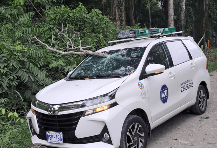 En Cahuita, una gran rama atravesó el parabrisas de un carro y por poco lastima al chofer.