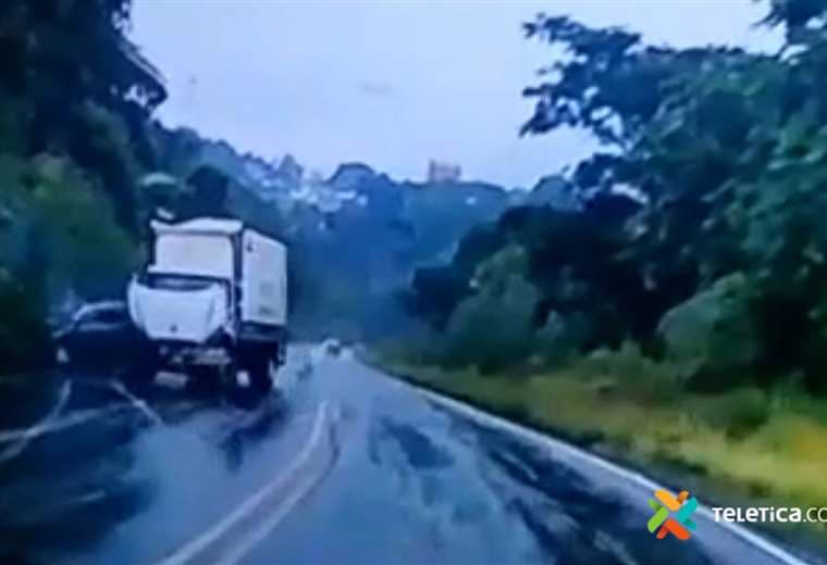 Un conductor grabó el instante en que el chofer de un camión perdió el control y provocó un accidente en Grecia de Alajuela.