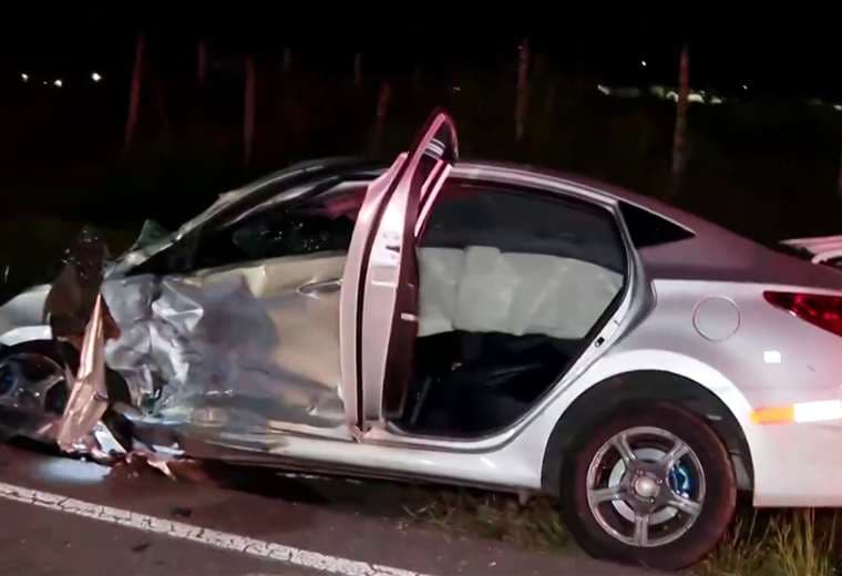 El impacto fue tan fuerte que uno de los carros quedó al otro lado de la pista.