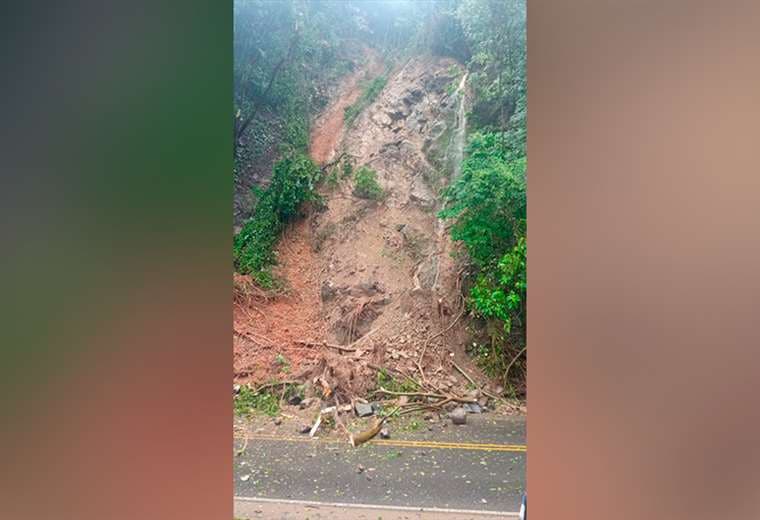 En los videos se observa el momento exacto en que parte de la montaña cae sobre la ruta nacional 34, específicamente a la altura de Tárcoles, en Puntarenas.