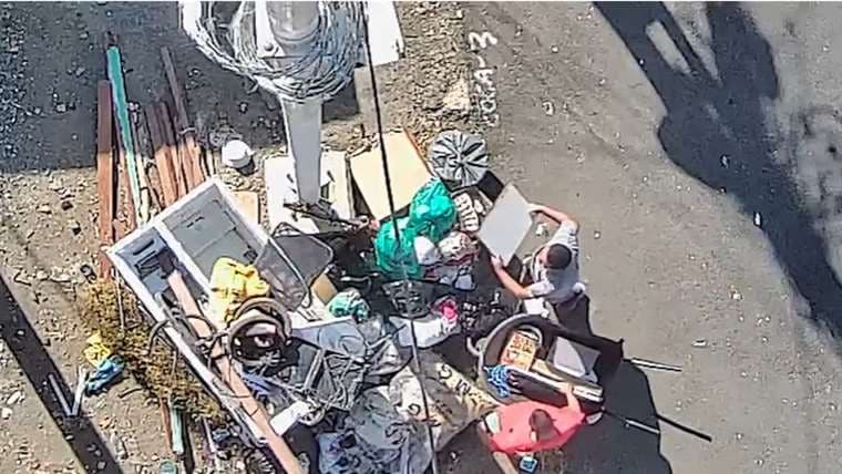 Los sujetos, quienes llevaban un carretillo cargado de desechos electrónicos, quedaron grabados en las cámaras municipales.