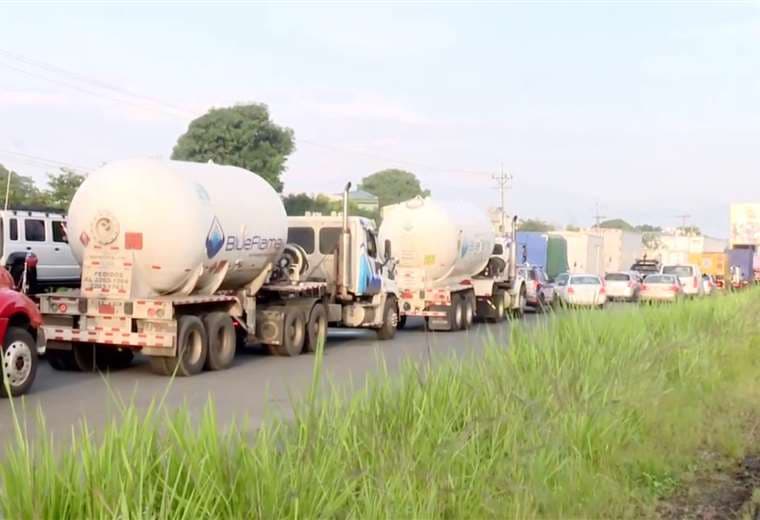 El congestionamiento se registra por varios kilómetros e inicia en El Coyol, un sector en el que se sitúan varias zonas francas.