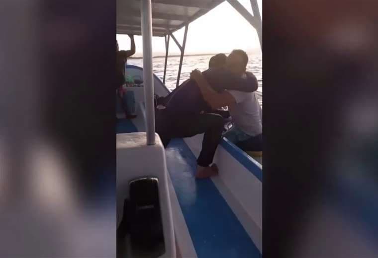 “Acá hay comida y chicharrón, de todo, hasta eso te llevaba... dame un abrazo güevón”, se mostró emocionado el capitán del bote al encontrar a Rodríguez.