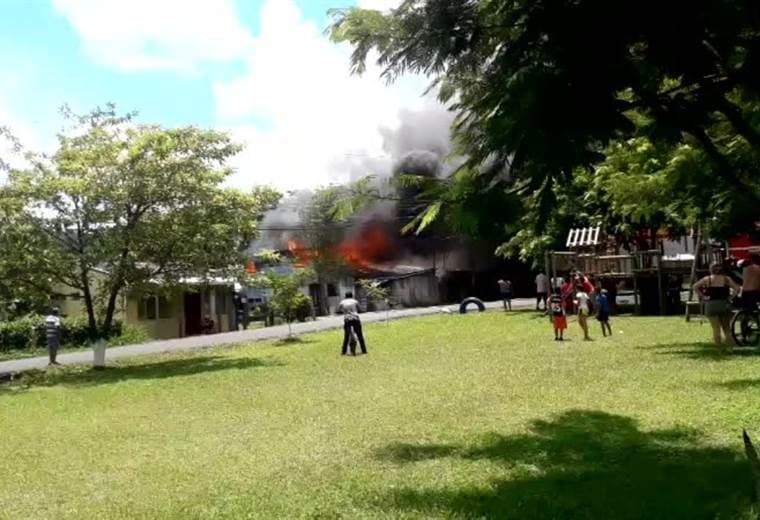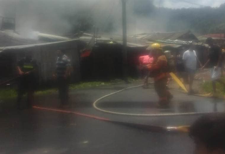 Un incendio destruyó por completo seis viviendas y dañó parcialmente una iglesia este domingo en Siquirres, Limón.