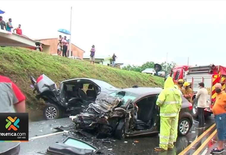 Cuatro personas heridas de gravedad es el saldo de un aparatoso accidente de tránsito ocurrido esta tarde en la ruta 27, específicamente debajo del puente de La Guácima en el sentido Caldera - San José.