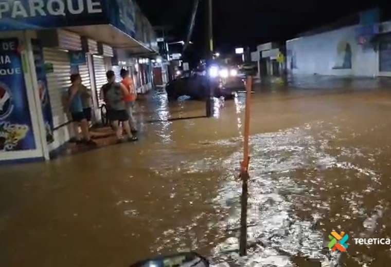 Las fuertes lluvias de las últimas horas provocaron inundaciones en el centro de Upala y en Nosara de Guanacaste.