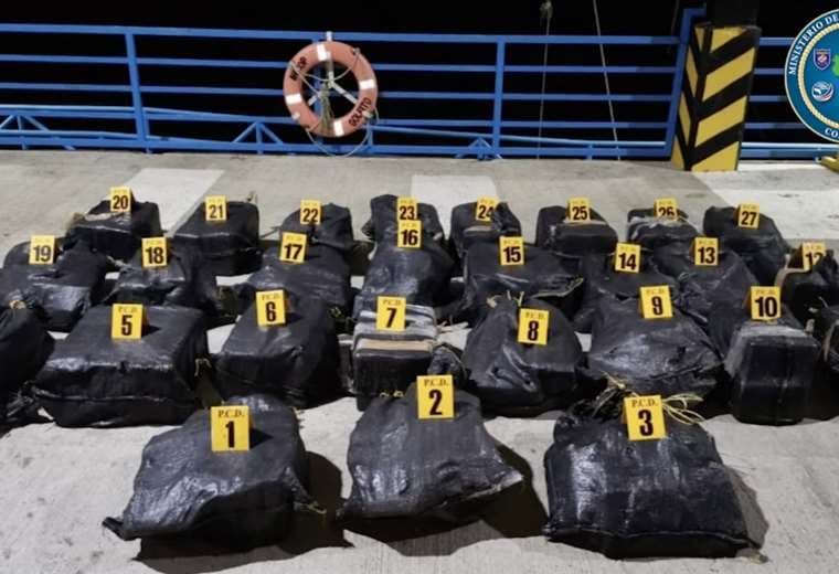 Los guardacostas ubicaron 27 bultos con droga y 14 estañones para combustible, por lo que trasladaron la embarcación a tierra en donde se determinó, por parte de la Policía de Control de Drogas, que el producto era cocaína.