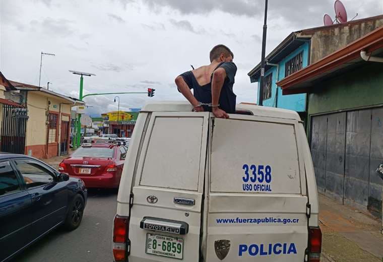 “Durante el traslado, el aprehendido comenzó a golpear la puerta de la unidad policial, por lo que los policías detienen la patrulla para ver la situación”, explicó a Teletica.com Adrián Noguera, subdirector de San José.