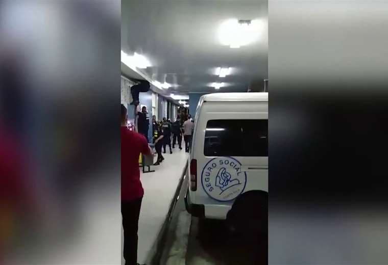 En el video se ven a los oficiales tratando de subir por el cielo raso del centro médico, para poder dar con el hombre, que huía a través de esta estructura.