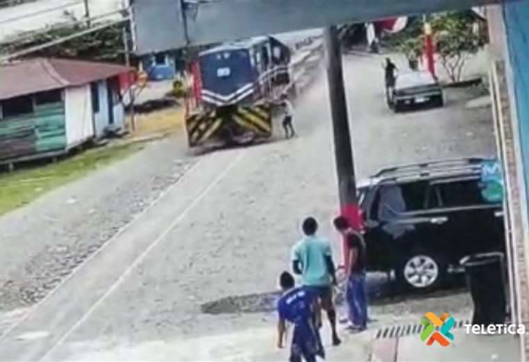 Una cámara de seguridad grabó el instante cuando un hombre se le tiró al tren y es embestido por este en Matina de Limón.