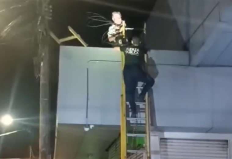 Fue necesaria la ayuda del Cuerpo de Bomberos, quienes colocaron una escalera para que subieran los policías.