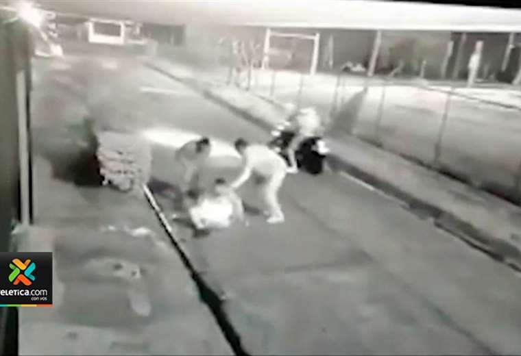 Una cámara de seguridad captó el momento en que varios delincuentes asaltaron a un repartidor de comida en Alajuela.