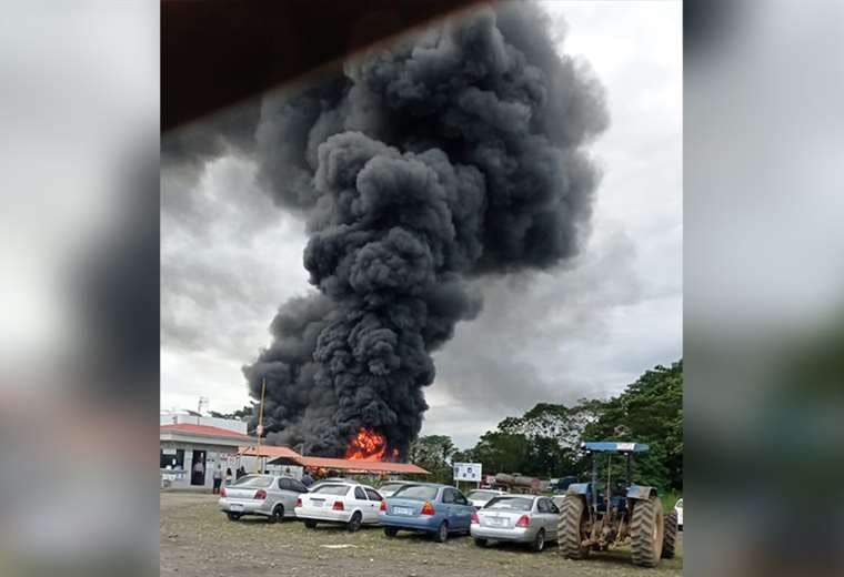 En el lugar se encuentran unidades de las estaciones de Bomberos de Guápiles y Cariari trabajando para combatir las llamas.