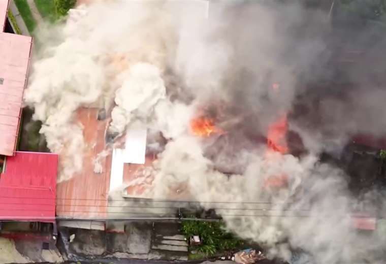 Dos casas fueron devoradas por un incendio la tarde de este jueves en San José de la Montaña, en Barva.