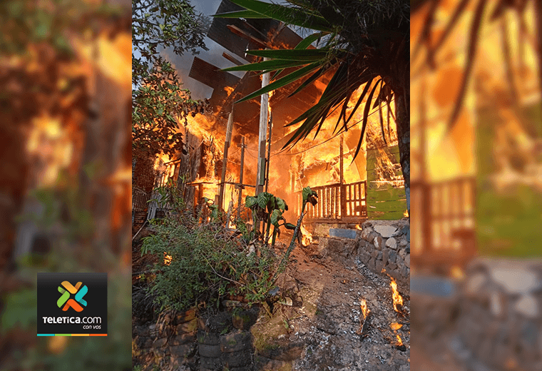 Un enorme incendio consumió una casa en Acosta, San José, la tarde de este miércoles.