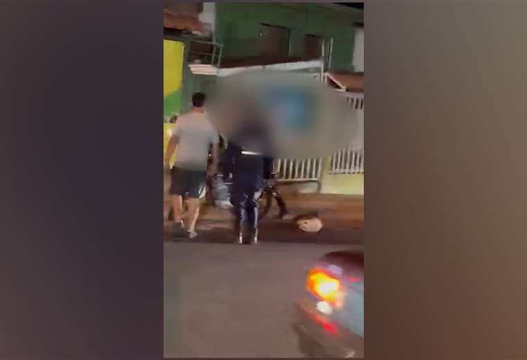 En la grabación se ve cómo los policías interceptan a un motociclista y lo bajan del vehículo; al parecer, lo golpean e intimidan, mientras que el ofendido grita que no porta armas de fuego.