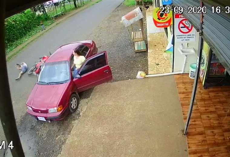 El suceso quedó grabado en las cámaras de seguridad de un local comercial. Se observa cómo el joven está montando su patineta, segundos después ve la motocicleta, intenta frenar, pero no puede y colisiona contra esta.
