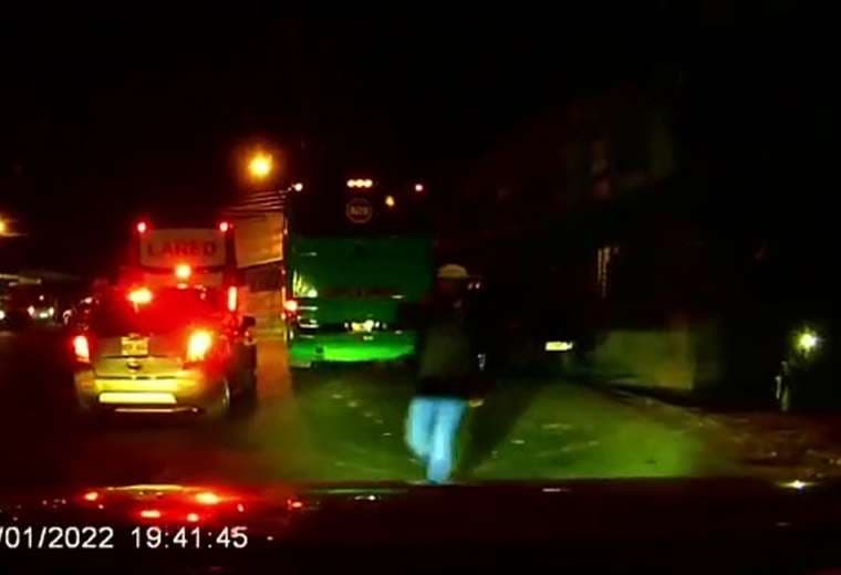 Como se aprecia en las imágenes (ver video adjunto), el sospechoso aprovecha que los pasajeros están atascados en la presa para "detenerlos", tocarles la ventana y exigirles que entregaran sus pertenecías.