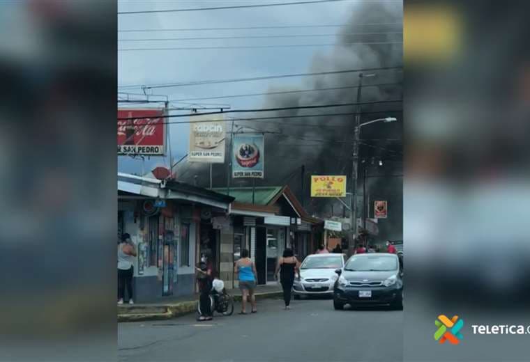 Un local comercial resultó seriamente dañado por el fuego en San Pedro de Barva de Heredia.
