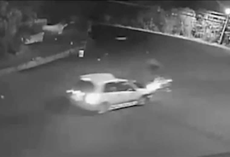 En el video adjunto se observa a un carro que, en apariencia, invade el carril contrario y colisiona de frente contra el motociclista, cuyo cuerpo sale disparado y recorre varios metros antes de caer al suelo.