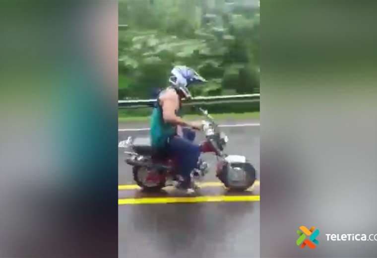 Como se aprecia en el video, el motociclista comenzó a zigzaguear entre los postes plásticos abatibles que están sobre la línea amarilla hasta que pierde el control y cae.