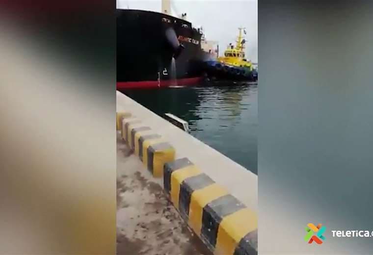 Un video captó el momento cuando un buque mercante golpeó el muelle de Puerto Caldera.