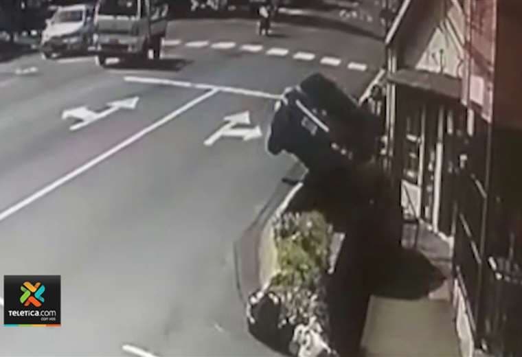 Una cámara de seguridad captó el momento del accidente, cuando la mujer luego de dar un giro a la derecha no logra enderezar el vehículo y se sale de la vía.